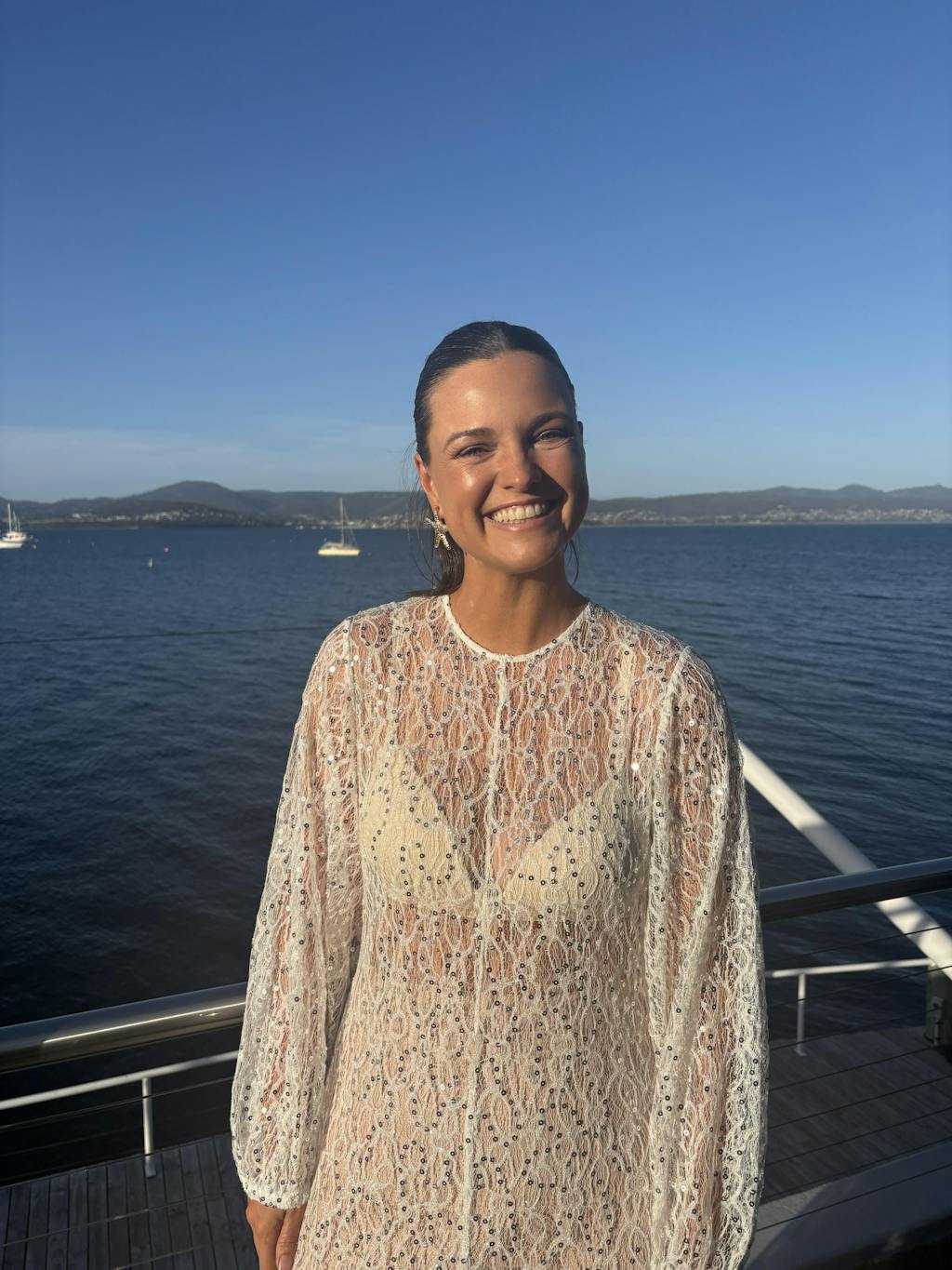 The dress comes with a sequin tie which can be used to cinch the dress in at the waist. Designed to be worn over bikinis, denim or contrasting underwear as styled on model.