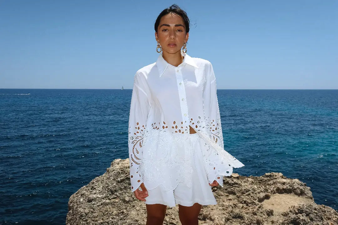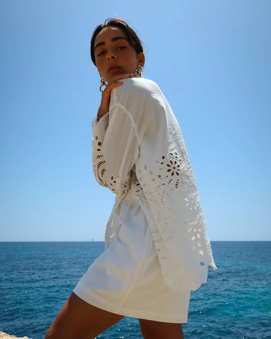 We have styled the shorts with the Cotton Broderie Button-up (size XS)